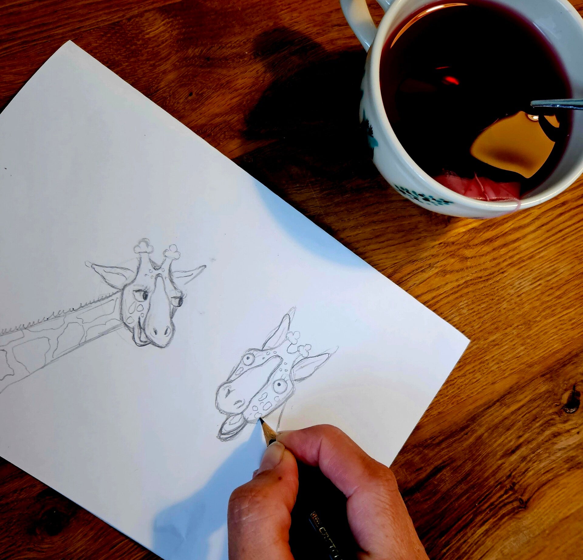 Warum eine Giraffe? Nun als meine Tochter noch klein war, war das ihr Lieblingstier. Sie hatte eine Giraffe als Stofftier. Ihre kleine Hand passte wunderbar um den langen Hals der Giraffe.